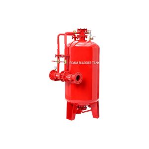 Vertical bladder tank is a pressure vessel with inside elastomeric bladder which stores foam concentrate and separates water. Foam concentrate is forced out of the bladder into flowing water to form foam solution through proportioning device.
